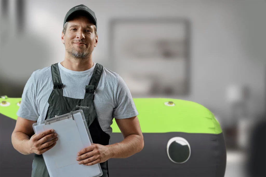 Chez Oxymatic®, nous fournissons un service complet pour les chambres hyperbares, garantissant la fiabilité et la sécurité de la thérapie. Notre équipe de service expérimentée offre une garantie de deux ans, des plans de protection supplémentaires, une assistance technique complète et l’accès à des équipements de remplacement pour assurer la continuité du traitement. En choisissant Oxymatic®, vous optez pour la certitude des performances et vous maximisez le potentiel de la thérapie hyperbare.
